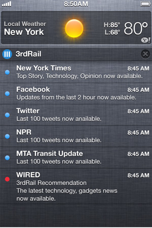 As you continue to use 3rdRail, it begins to learn your patterns and tastes. After just a short bit of time, it is finding new things for you to read on the subway, downloading your content when you need it most, and always knowing when your train is really leaving the station.