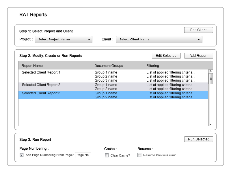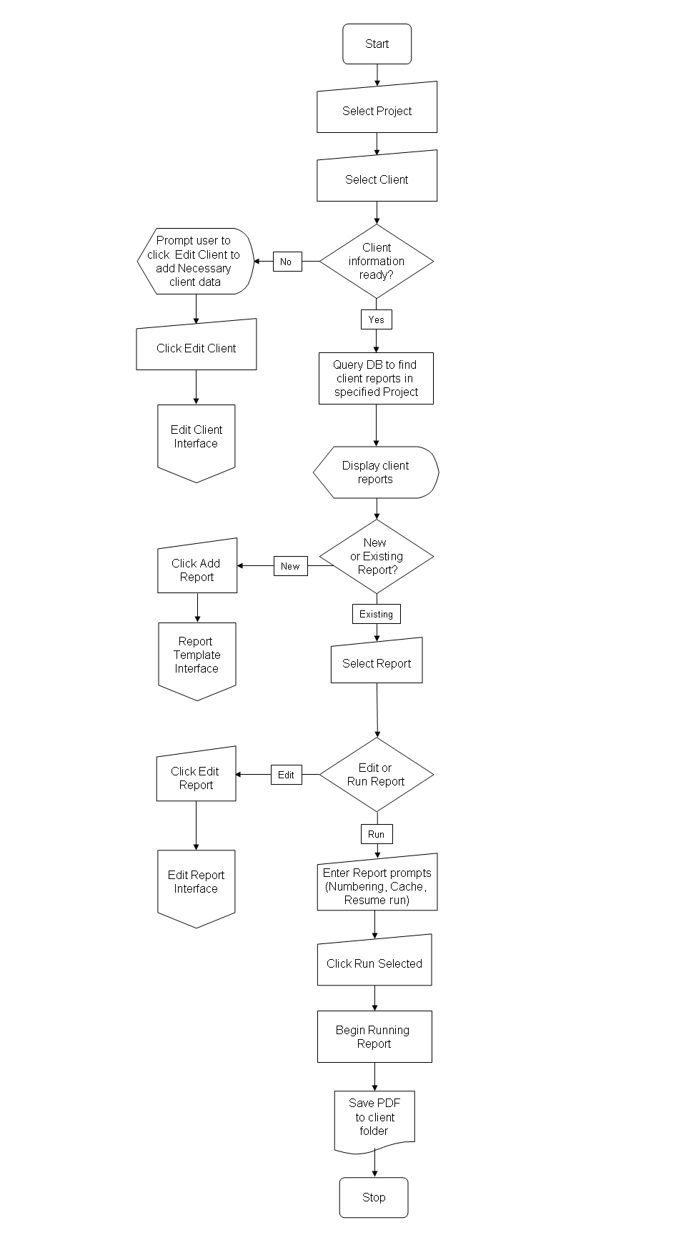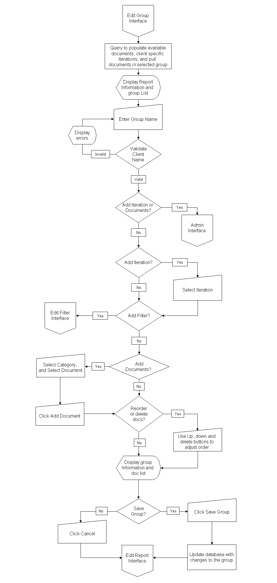 While refining the application design, I created initial wireframes that were shared with the user base, and collected feedback that was used to put together an HTML mockup of the application (developed using Ext JS). I then created detailed flowcharts to outline the application flow and communicated the requirements to developers along with the HTML / Ext JS prototype and detailed stories.