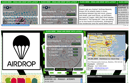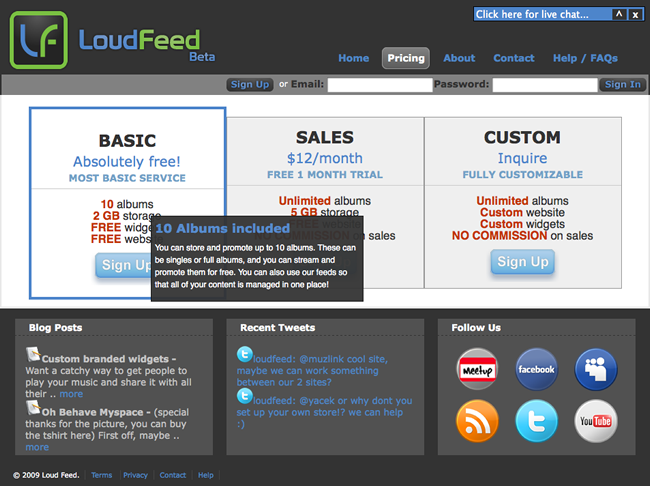 The sales widget shown here was built using the Loud Feed back end. All of the artist data is stored in Loud Feed, and users maintain a list of the albums that they would like included in the widget. It uses the Clearspring platform for viral sharing. Like the rest of the product, it is highly integrated with Amazon web services, using Amazon S3 for storage and Amazon Payments for sales.